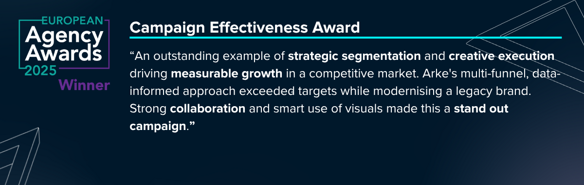 The Niche to Known campaign won the European Agency Award for Campaign Effectiveness. Judges noted the campaign’s impressive results achieved through purposeful audience planning and refined delivery.