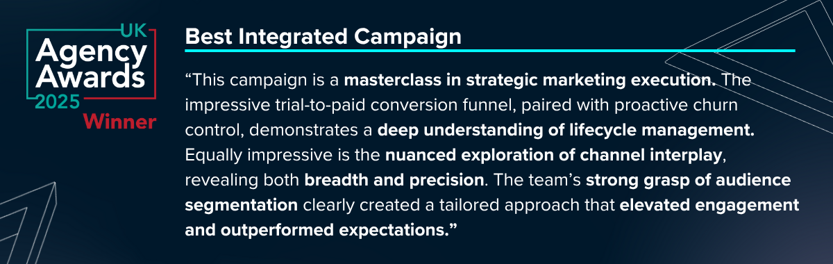 From shifting consumer behaviours to evolving media habits, we build scalable, full-funnel strategies that turn interest into sign-ups, and sign-ups into loyal subscribers. Whether you’re aiming to boost trials, reduce churn, or cut through the noise, we help you make every impression count.