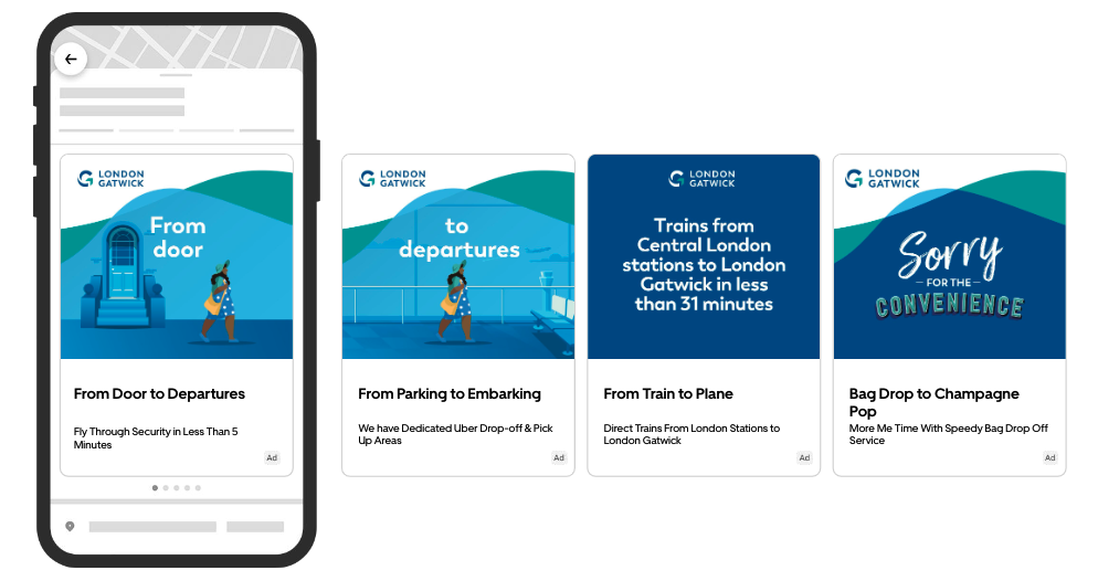 We wanted to explore new ways of reaching our target audience and were one of the first agencies in the UK to use Uber Rides Ads. These ads drove the highest dwell time on ads, which worked perfectly for local consideration. We delivered sequential messaging to travellers heading to London’s competitor airports across three key moments in the user journey: Dispatch, Enroute, and On-Trip.